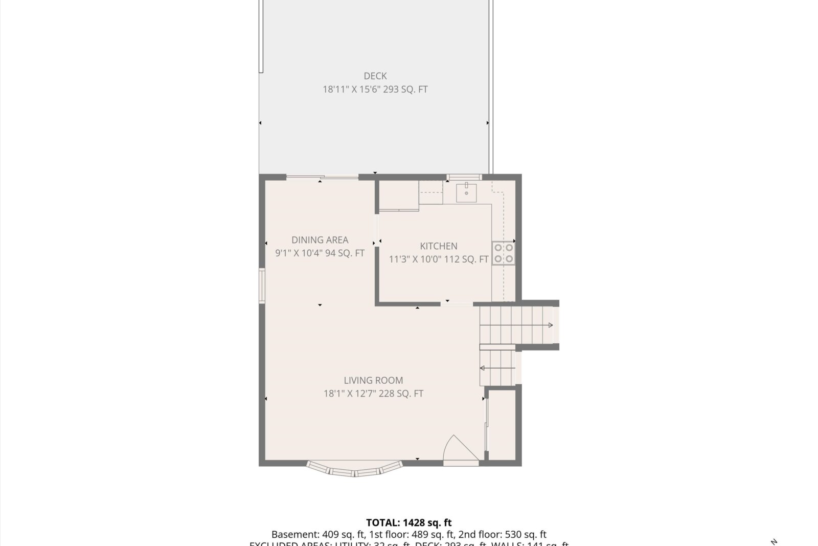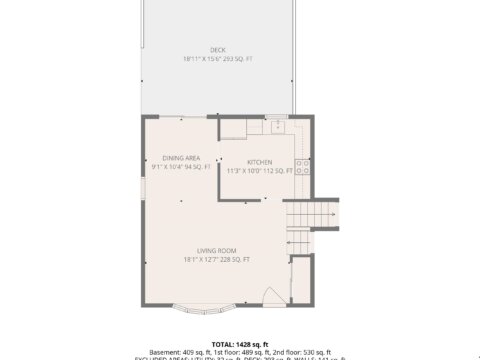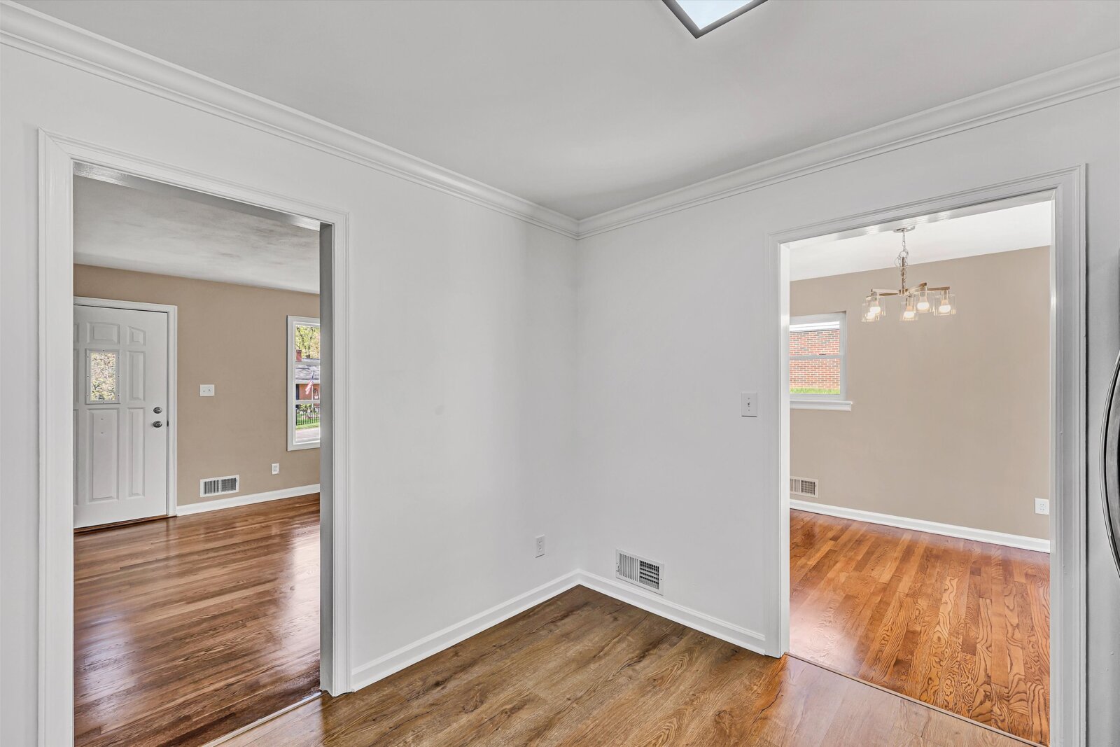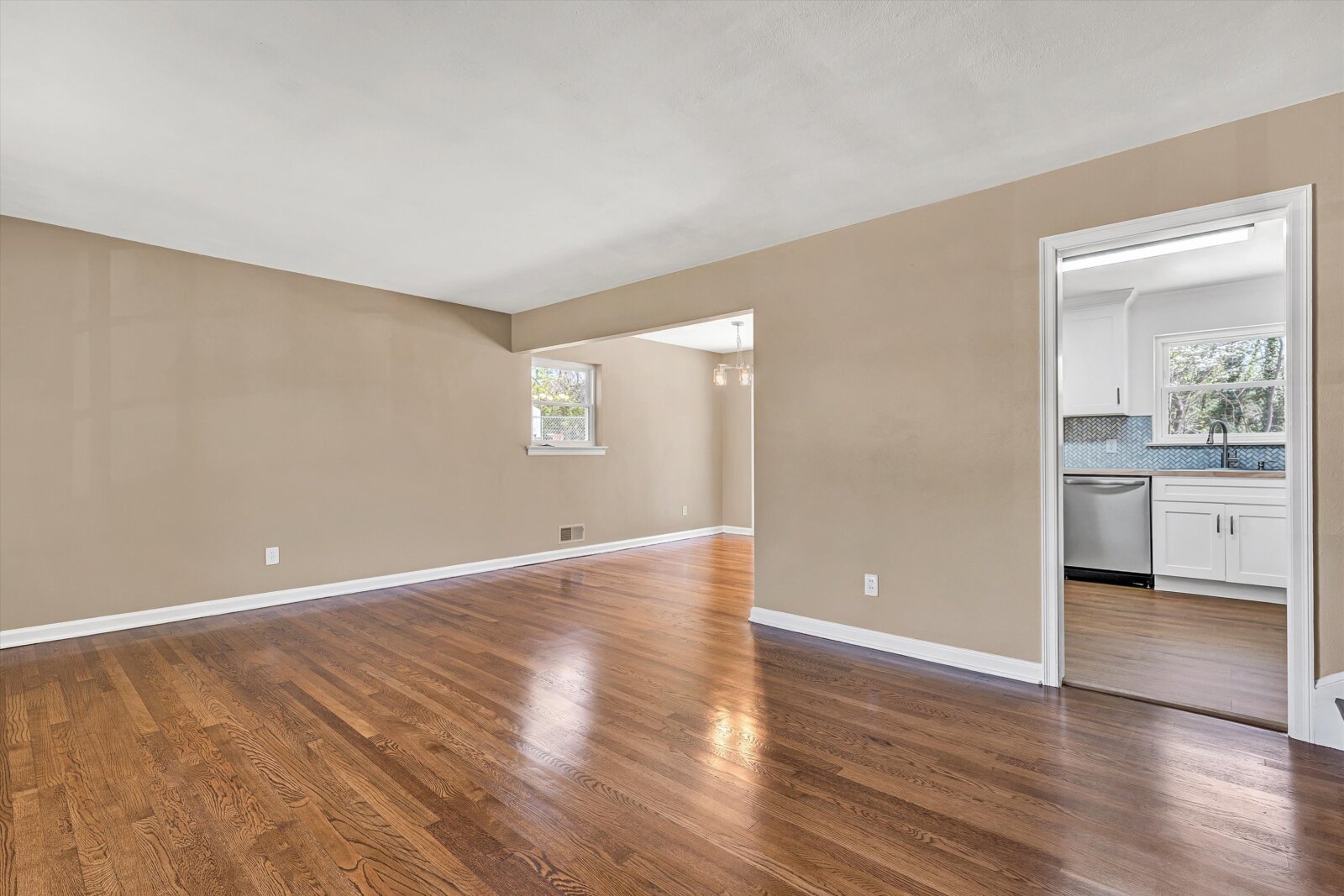 - Dining room with new chandelier, hardwoods, & sliding glass door to back deck