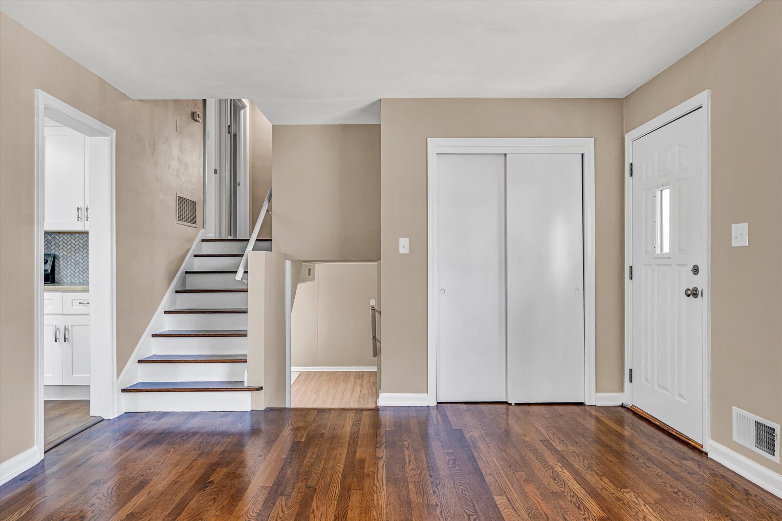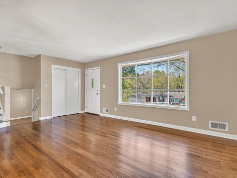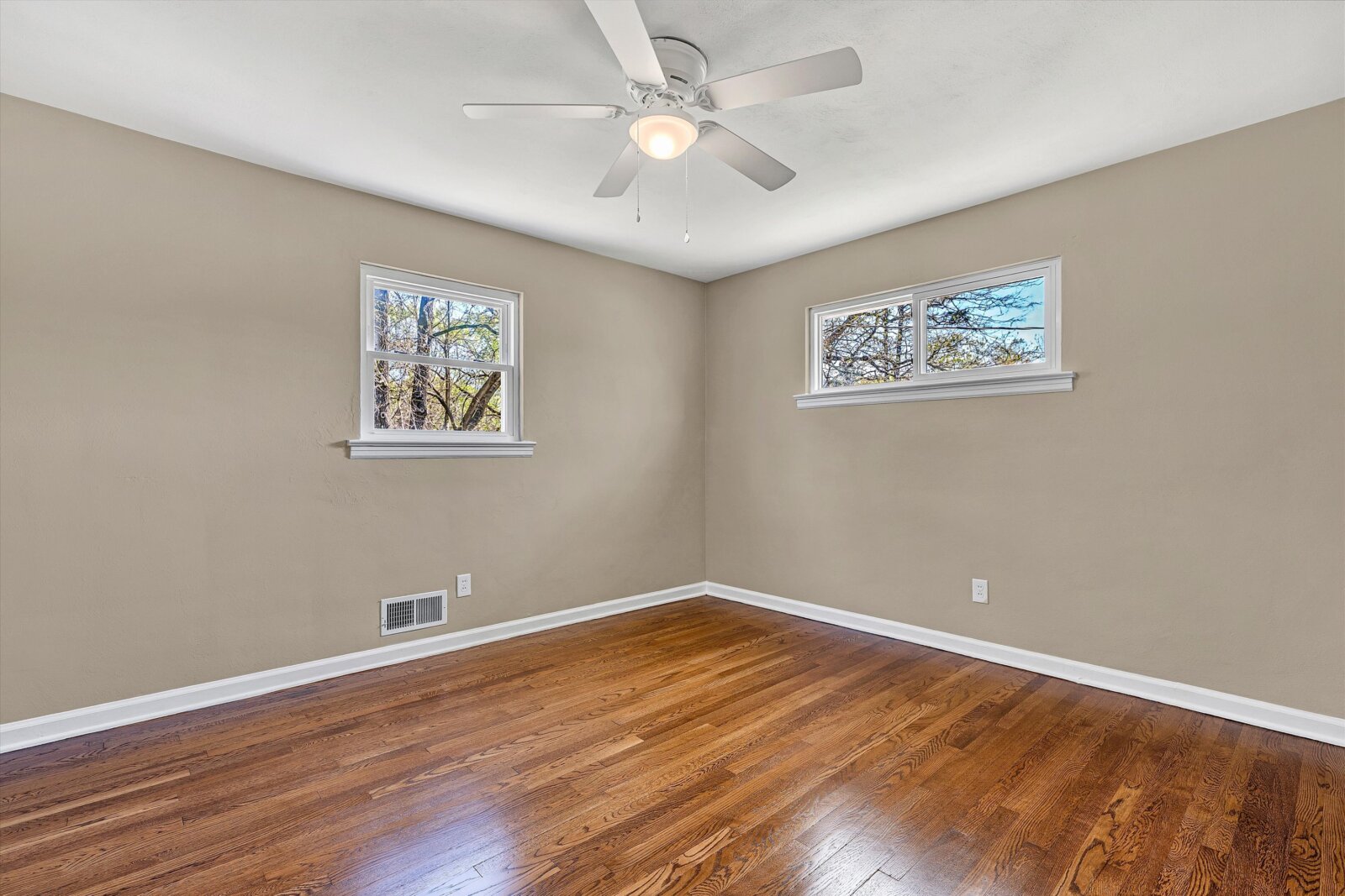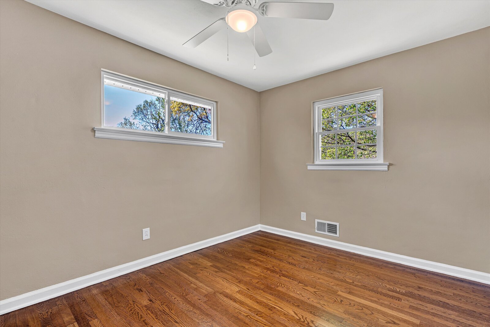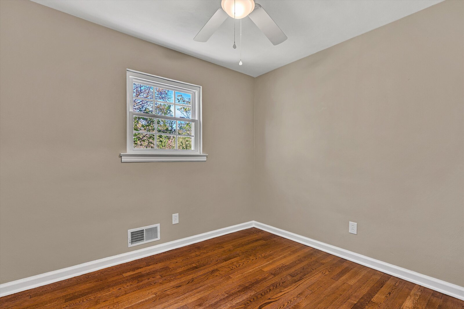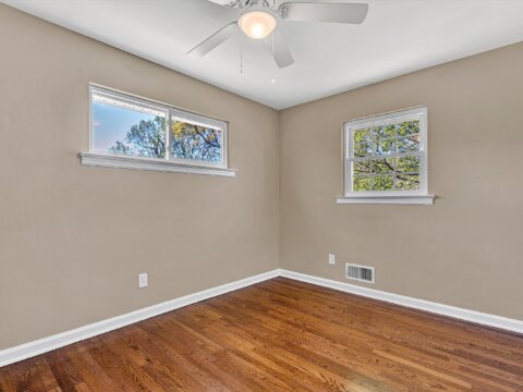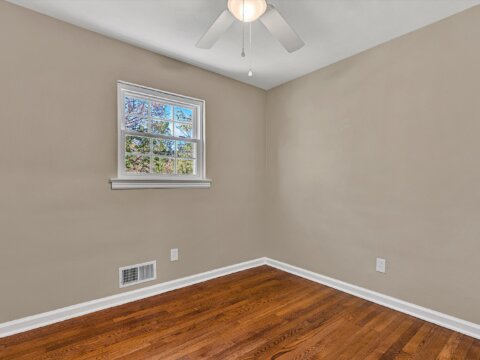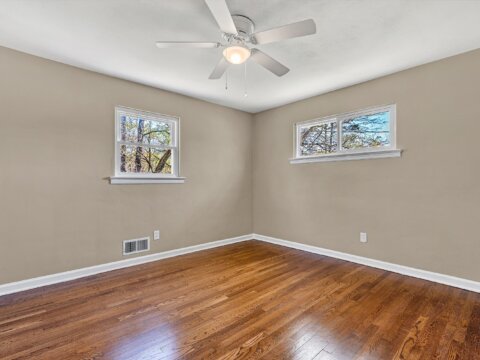 - Three large bedrooms with ample closets, new ceiling fans/lights, gleaming hardwoods